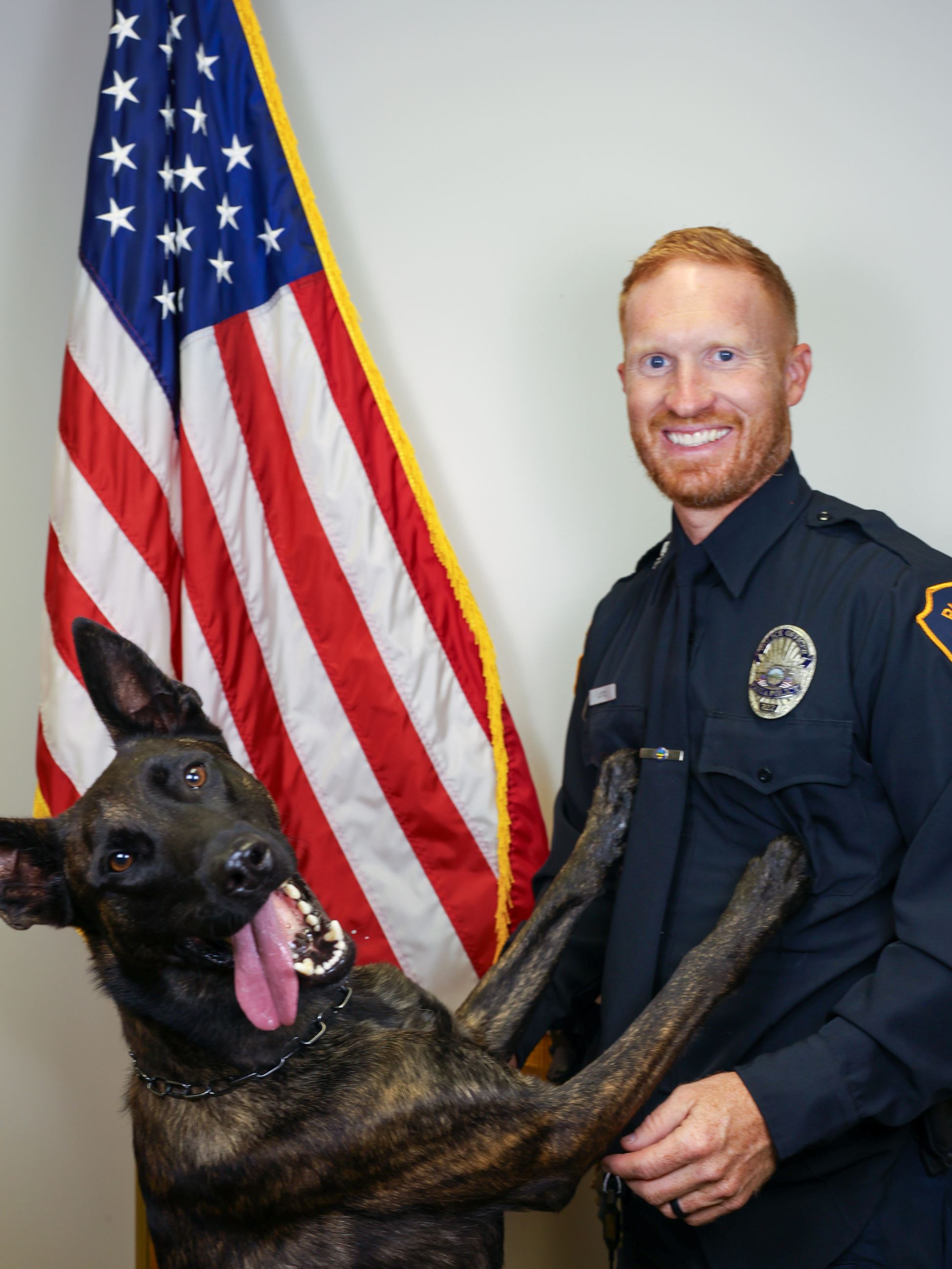 Photo:K-9 Pako and his handler, Officer Garret Lotz, pose for a photo.